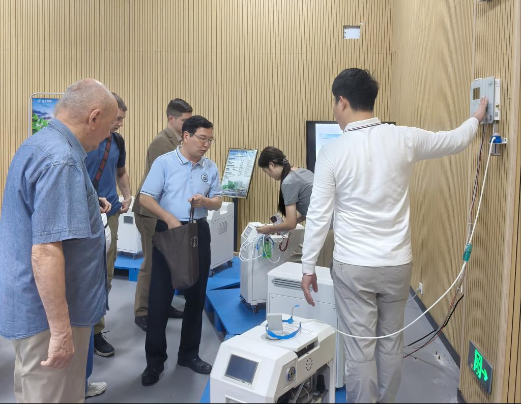 在参观过程中,学生们精心制作的产品成为了亮点之一。其中,一台自主研发的一体式口鼻弥散制氧机尤为引人注目。这台制氧机经历了从初代到四代的不断迭代与升级,每一次更新都凝聚着团队成员的智慧与努力。梁院长详细介绍了每一代制氧机所面临的问题及团队如何克服这些困难,从最初的出氧干燥、气体倒吸,到后来出氧湿润、采用弥散式气体的技术,大大提高了使用效率与舒适度。在过去一年,工作室已完成了10L弥散型制氧机的研发,在第二十五届高交会上,制氧机作为工作室的产学研成果跟随学校的步伐一同送展,并吸引了不少客户的兴趣和咨询。每一步都彰显了团队的创新精神与不懈追求。教授对制氧机的设计、性能以及实用性赞赏有加,纷纷表示后续如果有机会非常希望与智造先锋工作室展开深入合作。
