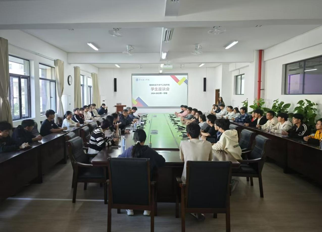 为了解我院2024级学生在学习、生活等方面的问题,回应学生关切,11月28日下午,我院在惠州校区行政楼203会议室召开2024级学生座谈会,本次座谈会有副院长孟遂民,电气系副主任黄浩,智能制造系副主任庞姗,电子系副主任朱建兴及部分教师代表、24级43位学生代表共同参加。