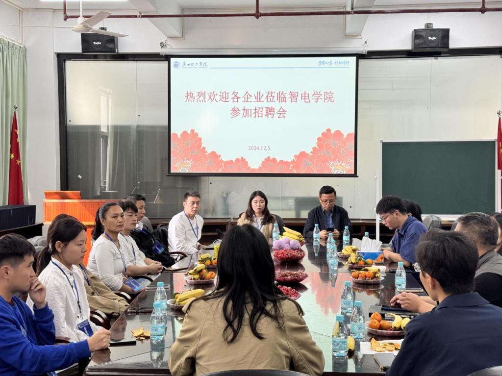 招聘会开始前,学院领导与用人单位亲切交流,了解招聘近况及各岗位招聘需求,深入探讨校企合作,进一步达成合作意向。