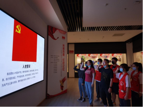 在参观过程中,党总支书记吕在艳带领实践队重温入党誓词,铿锵有力的宣誓声响彻展厅。