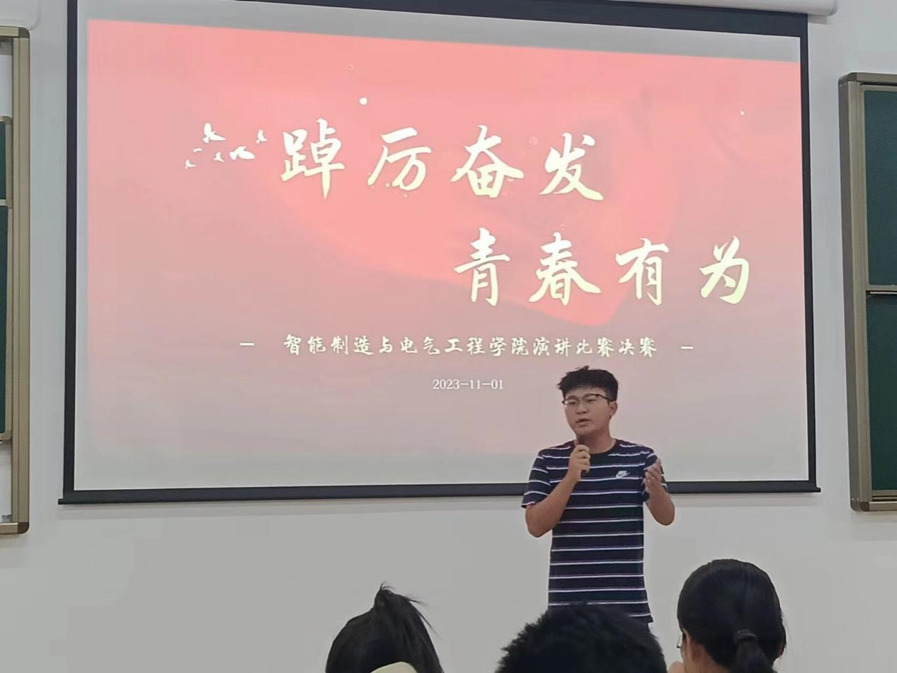11月4日晚,智电学院在惠州校区教学楼508教室举行了以“踔厉奋发,青春有为”为主题的思政演讲比赛决赛。本次比赛嘉宾和评委包括谢燕惠、布树凯、王欢、狄铁成、刑贞德、朱玲教师。
