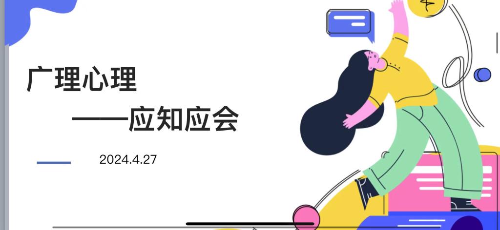 会议首先简要介绍了心理咨询中心的职能和提供的服务,强调了心理健康对于学生学业和生活的重要性。接着,介绍了一些机构内的场地保障,课程设置等。为了我们学生心理健康安全,还开展心理健康普查,并针对不同年纪特点采取不同量表测评,对部分学生还会开展一对一心理访谈。之后还介绍了心理健康活动,并告知了心理预约途径与咨询方式。
