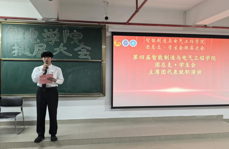 大会最后,第四届KY开元集团团总支·学生会主席团代表张俊烯进行就职演讲。首先,他感谢往届师生的贡献,承诺将满怀热情履行职责。然后,他提出新学年学生会的四大工作方向:一是加强组织作风建设二是推进学风建设三是做好内部协调、加强与兄弟组织交流,力争带领学院学生会再上新台阶。最后,他祝愿KY开元集团团总支·学生会将越来越好!