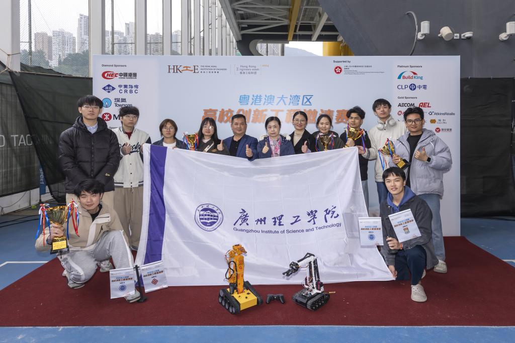 (张德福 高敏)2024年3月9日,我校应香港工程师学会邀请,组织KY开元集团的两支队伍参加在香港举行的“香港工程师周 2024 粤港澳大湾区高校创新工程邀请赛”。比赛邀请内地和香港的高校工程系学生联队参赛,各支队伍需要设计遥控车、机械臂和桥梁,在桥梁上两台遥控车机械手完成旗帜的交接,其中一台遥控车再把旗帜运到沙堡最高端,以争夺奖项。经过联队紧锣密鼓的密切合作,香港大学-广州理工学院 A 队组成的联队获得冠军,香港理工大学-广州理工学院 B 队获得亚军。