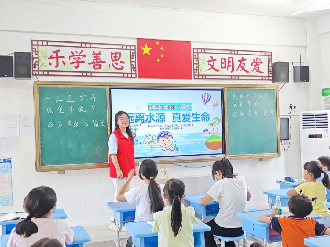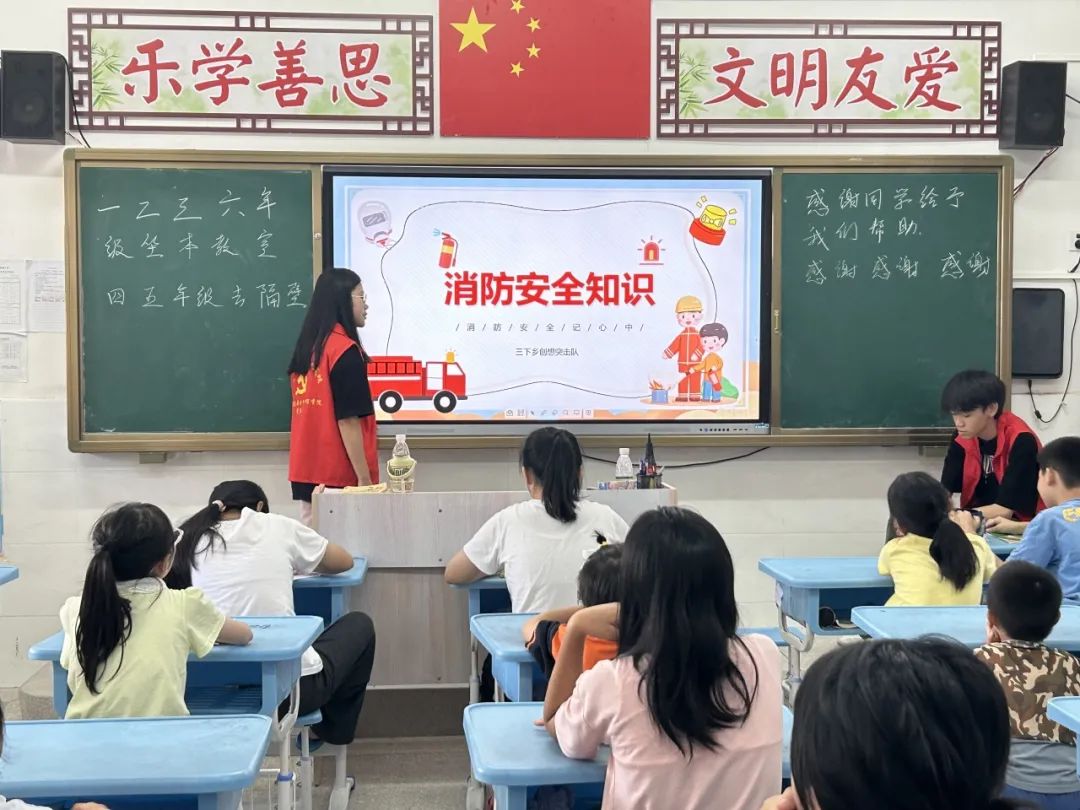 午后,主题班会如约而至。班会课分为三个专题,分别是红色专题、安全专题、文化专题。在红色专题方面,突击队成员吕嘉豪和蔡智深入讲解当地红色英雄人物及其事迹,教育孩子们以史为鉴,自觉弘扬“勇于革新,敢于胜利”的革命传统,加倍珍惜当前的和平生活和学习机会;在安全专题方面,突击队成员李诗梦和林洋均进行防溺水安全教育班会宣讲,突击队成员温淑怡与刘胤烨作同学日常消防安全知识分享,目的在于提升孩子们的自我安全防护意识;在文化专题方面,突击队成员何小钰以的当地传统文化“竹马舞”为例,引导孩子们深入了解当地文化,积极为弘扬和传播中华优秀传统文化做贡献。