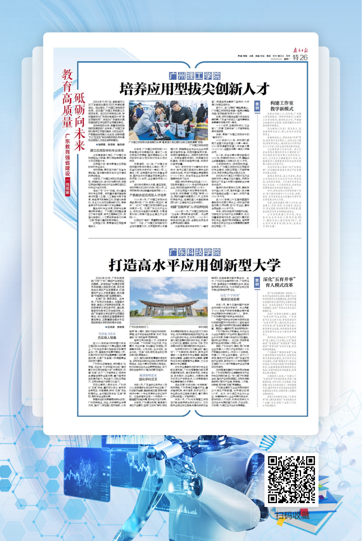 全省教育大会召开之际,南方日报“教育高质量 砥砺向未来”广东教育强省建设一线观察特刊刊发我校张世梅副校长、魏东婷主任撰写《培养应用型拔尖创新人才》文章。据悉,我校是全省获得报道的三所民办高校之一。