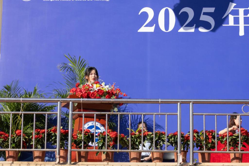 随后,人文与教育学院刘炫同学作为学生代表发言,她结合自身经历分享了感悟。她提到,近期在体育竞赛中斩获佳绩的经历,让她真切领悟到拼搏与坚持的深层意义。