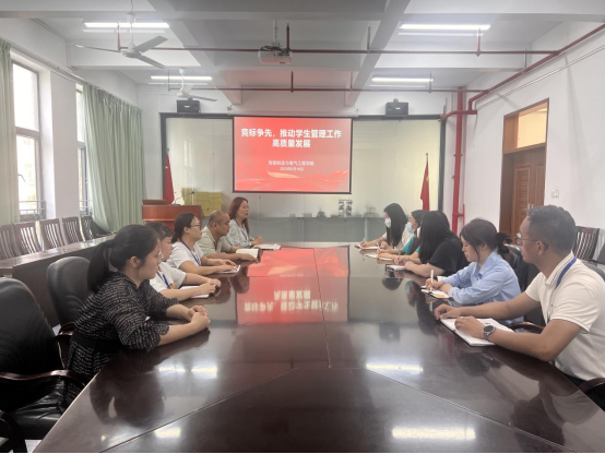 吕在艳书记传达了学院党总支学习贯彻习近平新时代中国特色社会主义思想主题教育理论学习计划,就进一步推进学生管理工作高质量提出五点要求:一是聚焦高质量,准确把握学校发展定位和面临的新形势。当前,学校进入高质量发展阶段,全体学管线人员要用高标准指导学生工作,担当作为,要围绕学校事业发展大局找准工作的切入点、结合点和着力点,努力开创学院学生工作高质量发展的新局面。二是聚集任务统领,坚持高标准引领。将学院建设和“三全育人”机制深度融合,加强内涵建设,深耕标志性成果。三是聚焦守正创新,推进学生管理的科学性、规范性和创新性。持续完善学生管理工作,创新学生管理机制,科学规范学生管理工作,以适应学校高质量发展的需要。四是聚焦责任,建设高素质学管队伍。全方位、多层次支持队伍的职业发展,分级分类开展系列技能培训,提高辅导员的综合素质和职业能力。五是聚焦安全维稳,维护学生生命安全和身心健康。守土尽责,抓牢安全底线,加强学生安全教育工作,深入学生班级和宿舍,高度关注特殊学生群体,尽职尽责对待每一名学生,做实做细每一项工作。