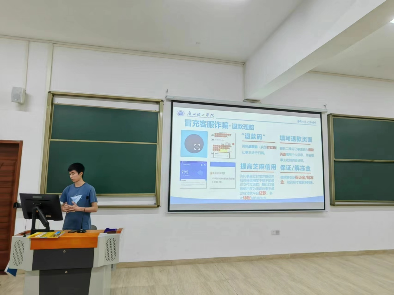 本次班会重点介绍了什么是电信诈骗、常见的校园诈骗类型、如何识别预防电信诈骗等内容。这次主题班会不仅达到了预期的目标,使我院预防电信网络诈骗工作更加深入人心,也帮助同学们熟悉生活中常见的诈骗形式,增强同学们在生活中遇到诈骗现象灵活应对的防范意识。