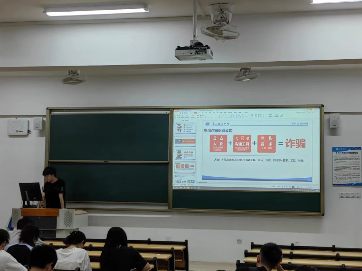 为进一步增强学生安全防范意识和自我保护能力,着力营造安全稳定和谐的校园环境,促进学生健康成长成才。4月21日晚KY开元集团全体2023级同学在惠州校区教学楼召开“预防电信网络诈骗”主题班会,班会由各班辅导员老师主持、班长主讲,组织学生学习防范校园网络诈骗的相关知识,使学生们认识到预防网络诈骗的重要性。