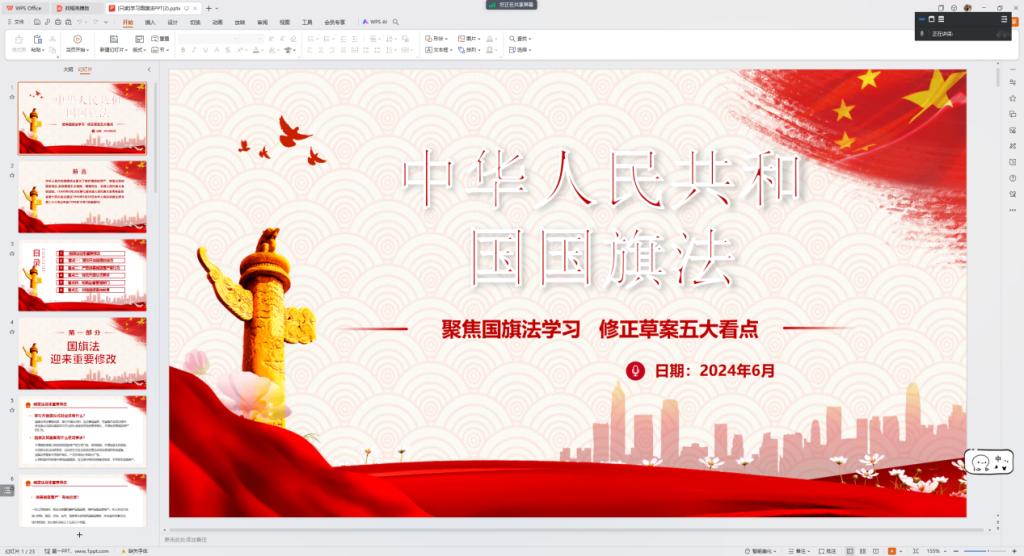 为呼吁同学们共同遵守《中华人民共和国国旗法》,尊重并维护国旗的尊严和荣誉,智电学院于6月10日组织各班级召开“聚焦国旗法学习,了解修正草案五大看点”的线上主题班会。班会内容着重强调了维护国旗尊严的重要性,并鼓励同学们积极参与国旗的升挂、使用和保护,共同为弘扬爱国主义精神贡献自己的力量。