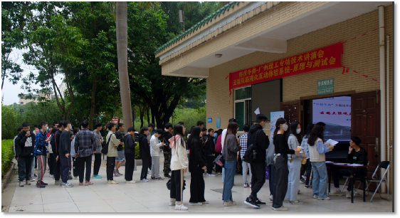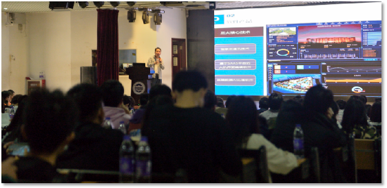在讲演会上,同学边玩边学边测试,不知不觉之间就愉快地完成了整个测试过程,现场气氛热烈,互动性很强。企业通过本次活动,也了解到本套系统的性能和不足之处,企业和学生都有收获,达到了良好的合作效果。
