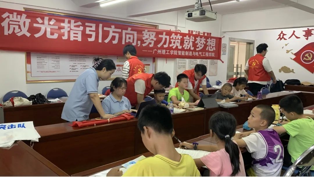 7月16日,我院“微光筑梦”实践团继续为新世界社区青少年儿童进行日常课业辅导,小朋友们在做作业中遇到难题和疑问时,队员们都耐心地为孩子们答疑解惑、查漏补缺,引导他们高效地完成作业。