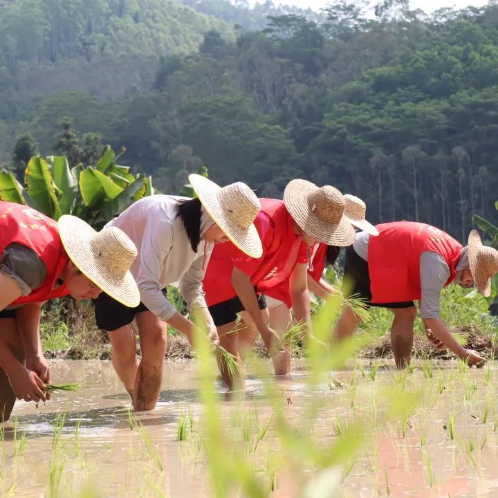 经过数小时的努力,原本空旷的水田披上了一层嫩绿的新装,秧苗整齐排列,充满生机,在微风中轻轻摇曳,仿佛在向我们诉说着未来的希望与梦想。在这片充满生机的土地上,我们深刻体会到了团结协作的力量。无论是年长的村民还是年轻的队员,大家都心往一处想,劲往一处使,共同为这片稻田的丰收而努力着。当地群众望着这片充满希望的稻田,脸上洋溢着欣慰的笑容,对队员们的辛勤付出赞不绝口。