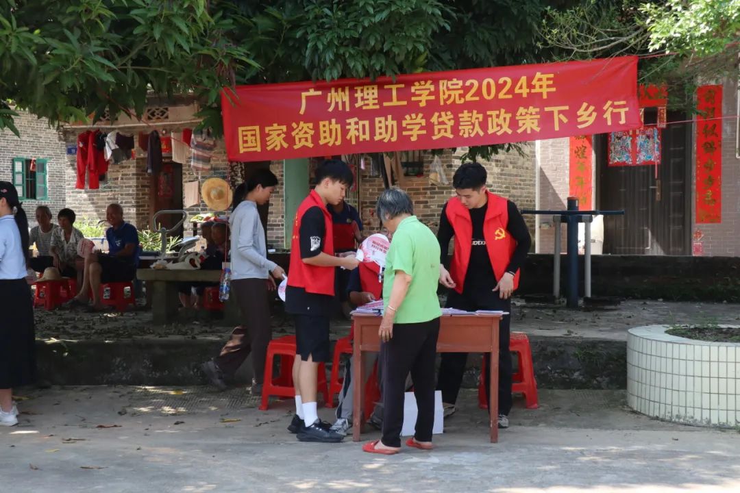 8月6日,为了让更多的学生和村民了解资助政策,广州理工学院助学筑梦实践队聚焦于学生资助政策、助学贷款政策的普及推广,在白洞村委会的下辖自然村--鹿田村人群密集的市场旁开展了设点摆摊宣传资助政策活动。