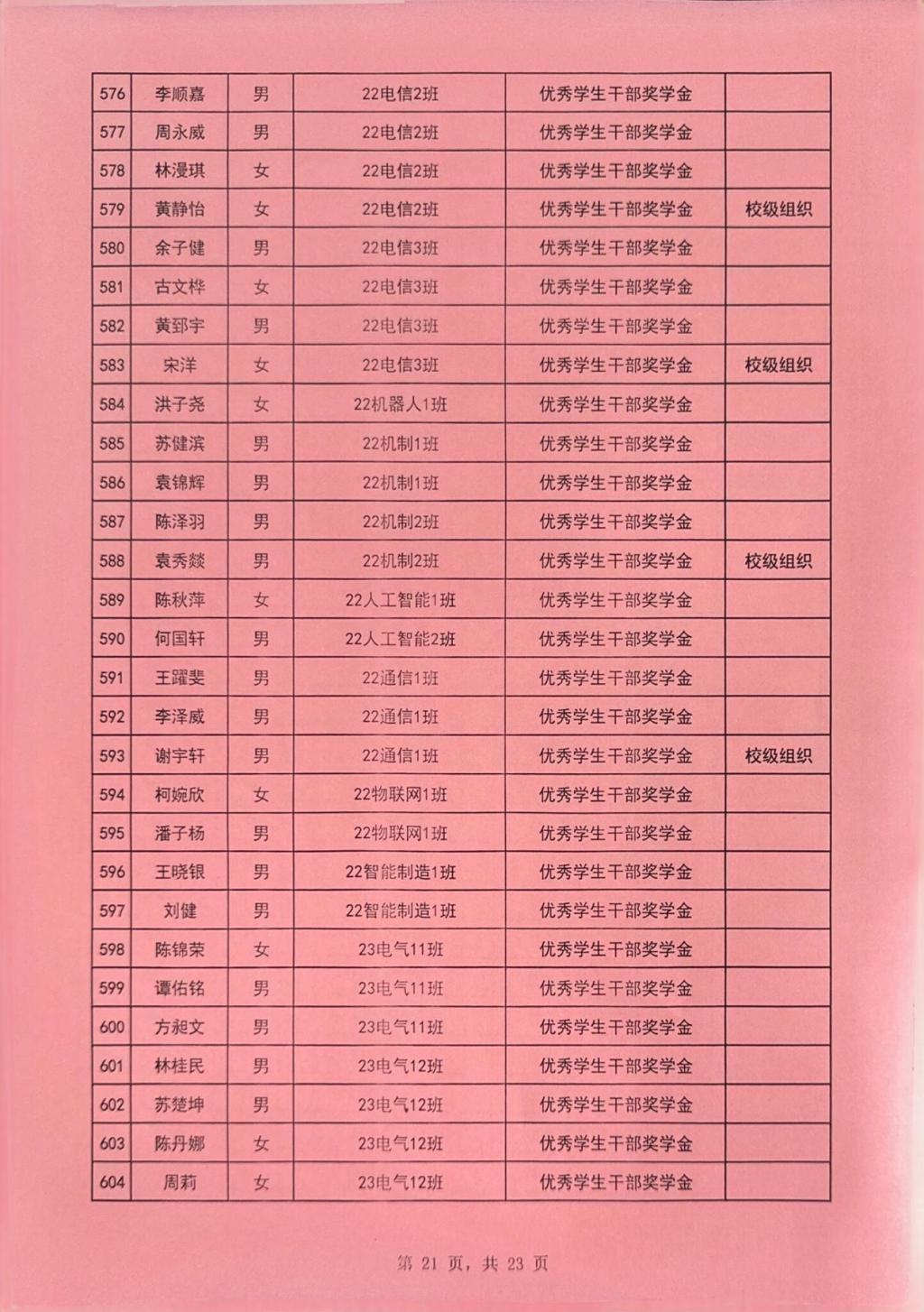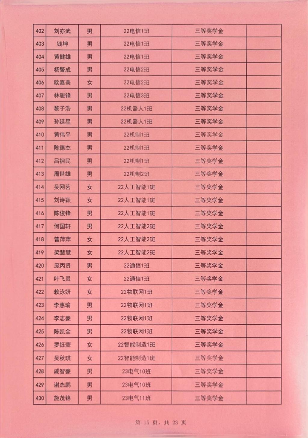 根据《广州理工学院学生处关于印发《2023-2024学年奖学金评比工作方案》的通知(广州理工学函〔2024〕148号),经过学院严格评选并公示,现将获得2023-2024学年学校优秀学生奖学金的林耀生等659名同学予以公示。公示时间从2024年9月25日至9月28日。如对公示内容有异议,请在公示期间内向智电学院办公室反映。反映情况时请签署真实姓名和联系电话,有具体事实,不签署真实姓名或不提供具体事实材料的,将不予受理。