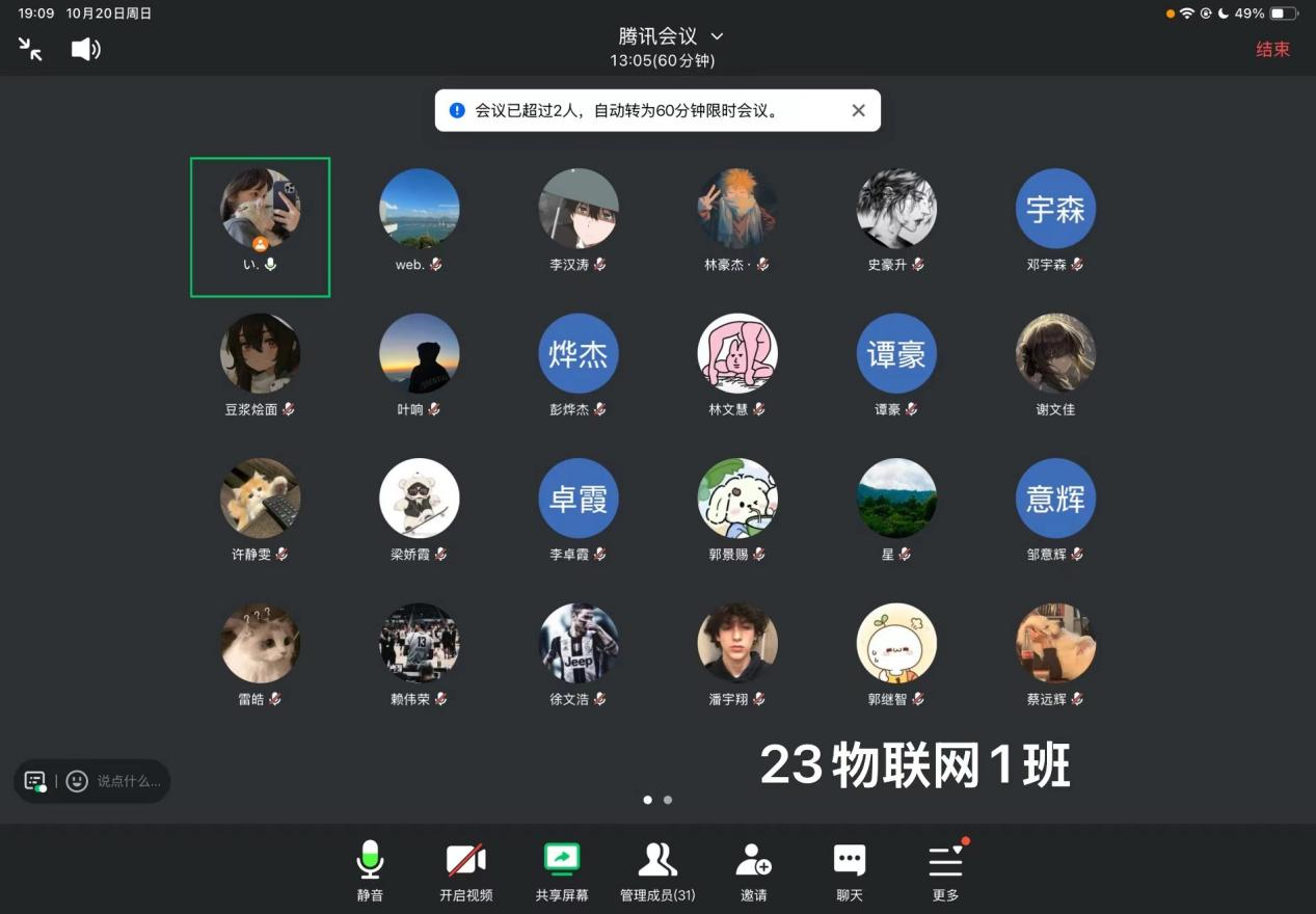 10月20日晚,为增强学生的集体意识与综合素质,KY开元集团于线上开展2024年秋季学期第8周班会,会议由班长和辅导员主持,全体同学参会。