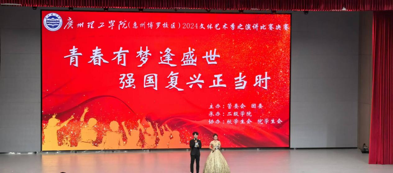11月13日,广州理工学院博罗校区在大礼堂隆重举行“青春有梦逢盛世,强国复兴正当时”演讲比赛决赛。进入决赛的10位选手齐聚于此,他们用热情和才华,呈现了异彩纷呈的精彩演讲。
