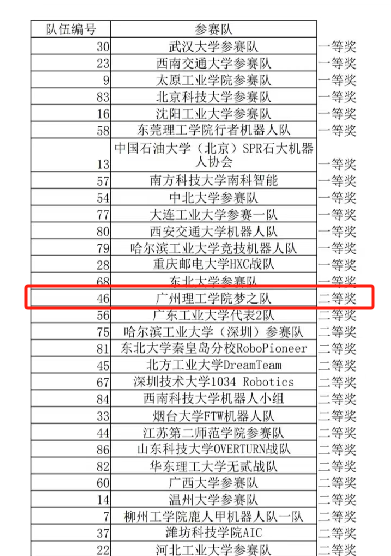 由我校智电学院廖金鑫、许锴烨等30名学生组成“广理梦之队”代表我校参赛,在王如意、王文涛等老师的悉心指导下,历经一年潜心备赛,从方案设计、技术路线制定、样机制作、功能验证调试、技术迭代更新等方面下足功夫,他们吃苦耐劳、克难攻坚、团结奋进,在面对国内知名高校的强大实力对手时毫不退缩,顽强拼搏,以永不言弃的精神勇夺佳绩。在颗粒归仓积分赛中以1090分的高分跻身32强(全国民办高校积分排名第一)。在16强小组赛中,面对北京科技大学、西安交通大学、四川大学三所超强对手,依旧无所畏惧,勇敢应战,虽未出线,但以高于40分的佳绩战胜了西安交通大学,创下团队重组以来的最佳成绩,虽败犹荣;在颗粒归仓技能挑战赛中,GLD战队更是以120分的高积分荣获国家级二等奖(排名第一);领队王如意老师被评为“全国优秀指导老师”。