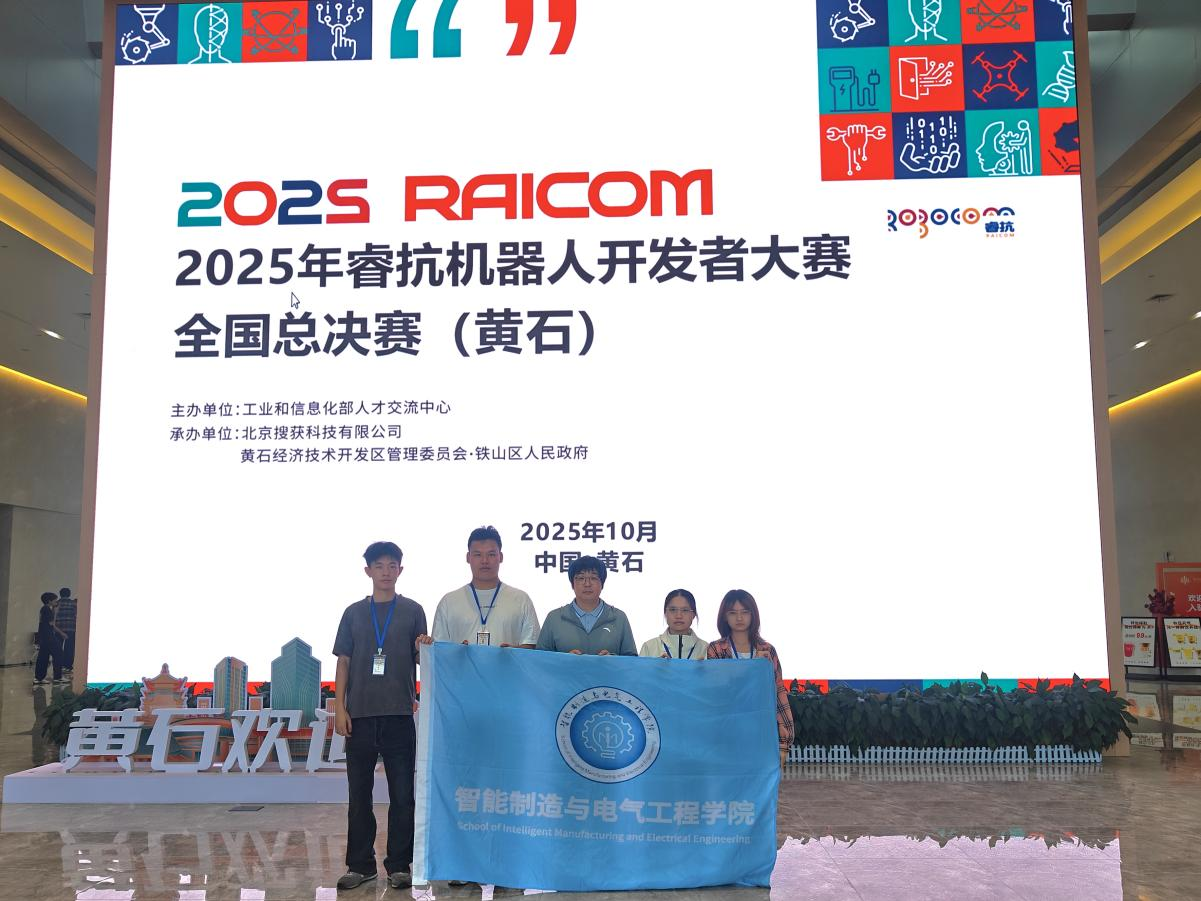 10月19日,2025年睿抗机器人开发者大赛(RAICOM)全国总决赛智慧零售赛项在湖北黄石圆满落幕,在这汇集了全国多所高校的科技竞技盛会上,由我校汪理、黄文轩老师指导,罗智祥、柯婉欣组成的Logos队取得了全国二等奖的好成绩。
