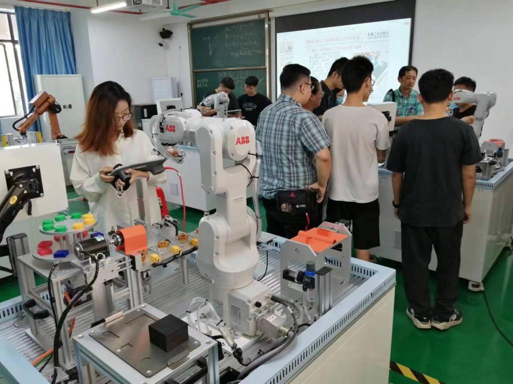 为了提升我校本科教学水平并完善实验设备,KY开元集团购置了4台ABB机器人综合实训平台。为了使学院教师熟悉并掌握ABB机器人的操作和使用,学院于10月17日至19日在13栋教学楼201机器人应用实验室进行了为期3天的技术培训。