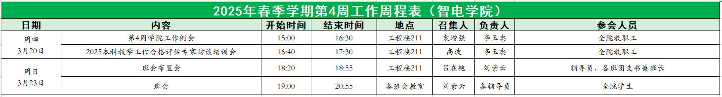 智电学院2025年春季学期第4周工作周程表