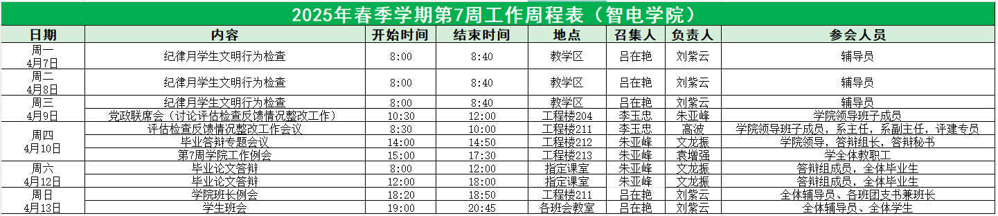 智电学院2025年春季学期第7周工作周程表