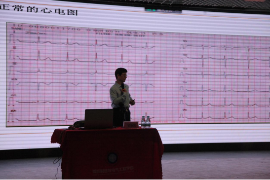 杨振野教授从除颤起搏监护仪的主要技术参数、基本组成、工作原理、仪器产品化的相关问题、发展方向及待解决的问题等方面进行了阐述。杨教授通过原理分析、案例引入等进行了形象生动的讲解,师生们极大地开拓了眼界,拓宽了知识面,提升了学习兴趣和创新热情。