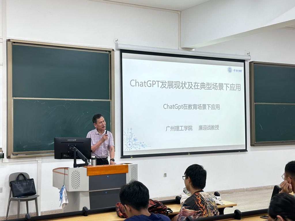 在数智化时代对高素质应用型人才培养的新要求下,为了进一步促进学院教学成果培育,拓宽学生对人工智能ChatGpt的认知,我院于5月16日下午,廉迎战教授在惠州校区1栋教学楼410教室,为同学们带来了题为《人工智能ChatGpt技术发展现状及其典型应用场景》的学术讲座。此次讲座由辅导员朱颖老师组织,学院2023级的145位同学积极参与。
