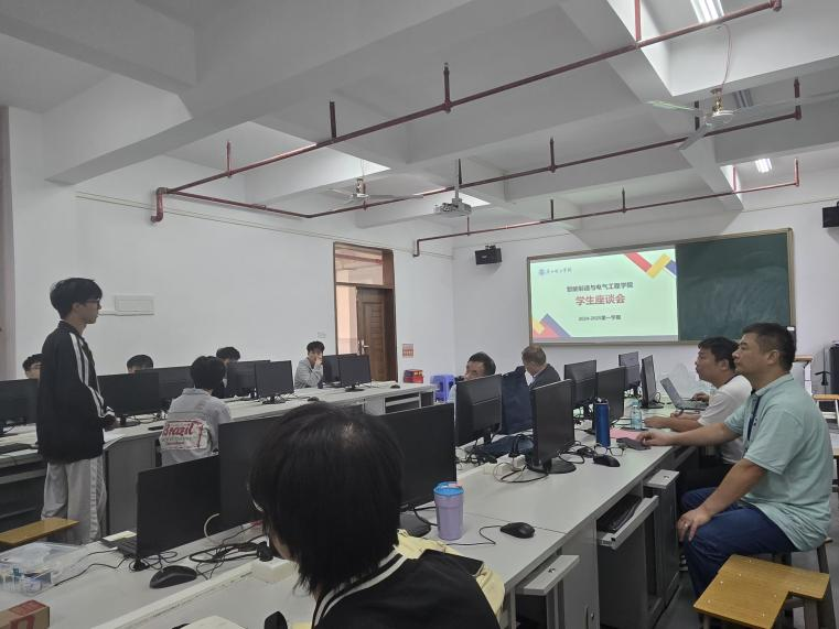 11月19日中午,电子信息系在工程楼602教室召开了系部2024-2025学年第一学期学生座谈会。学院副院长唐志列、学院督导朱小松、系主任龚凡、系副主朱建兴、青年教师阳柳五位老师参加了座谈会。会议旨在深入了解学生在校期间的学习与生活状况,广泛听取学生意见和建议。