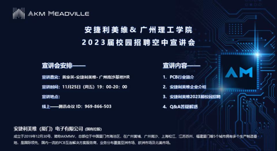 11月25日晚,为应对当前就业形势,做好毕业生就业工作,加强对毕业生就业的指导与帮助,我院邀请安捷利美维公司开展线上招聘宣讲活动,安捷利美维人事专员黄家英主讲,2023届全体毕业生参与本次宣讲会。