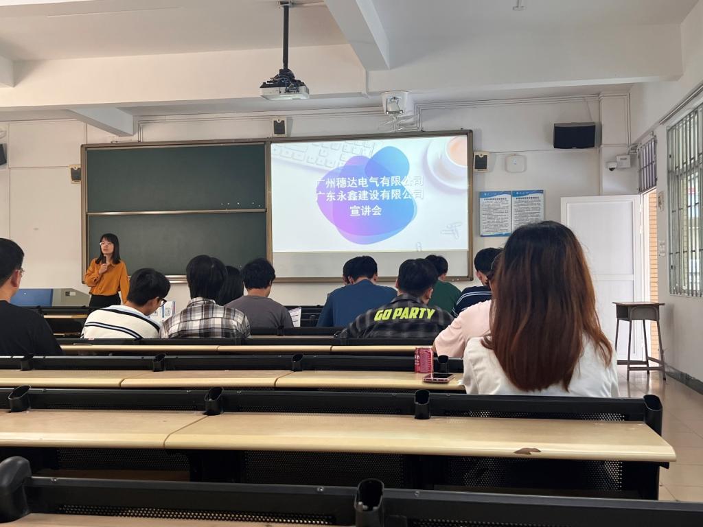 11月23日下午,我院邀请广州穗达电气有限公司进行2024届毕业生专场招聘宣讲会。来自电气工程及其自动化、土木工程等专业的同学参加了此次宣讲会。