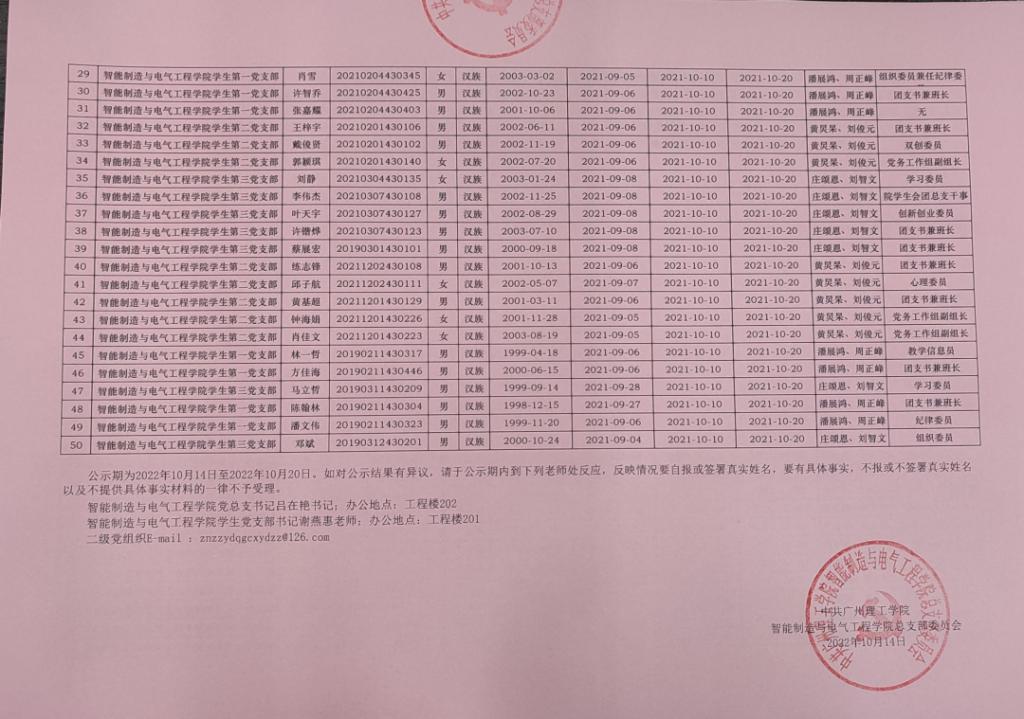 公示时间:2022年10月14日至2022年10月20日,公示期间,如有异议,请联系智电学院党总支。