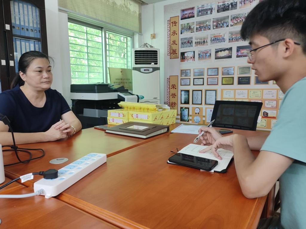 上午,社会实践队成员们来到广东省河源市紫金县花朝戏传承发展中心,在党支部书记、副主任黄丽华的热情招待下,成员们学习了解到花朝戏的表演程式、唱腔音乐、伴奏乐器等文化知识,队员们不仅从中体悟到中华传统文化千古传承的智慧,更为其历久弥坚而震撼。