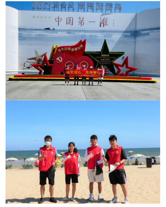 为了增强大学生的公益意识,增强文明行为理念,爱护环境,8月23日,社会实践队成员迅速组织,积极开展,在中国第一滩开展主题为“强文明理念,从我做起”的文明志愿活动。