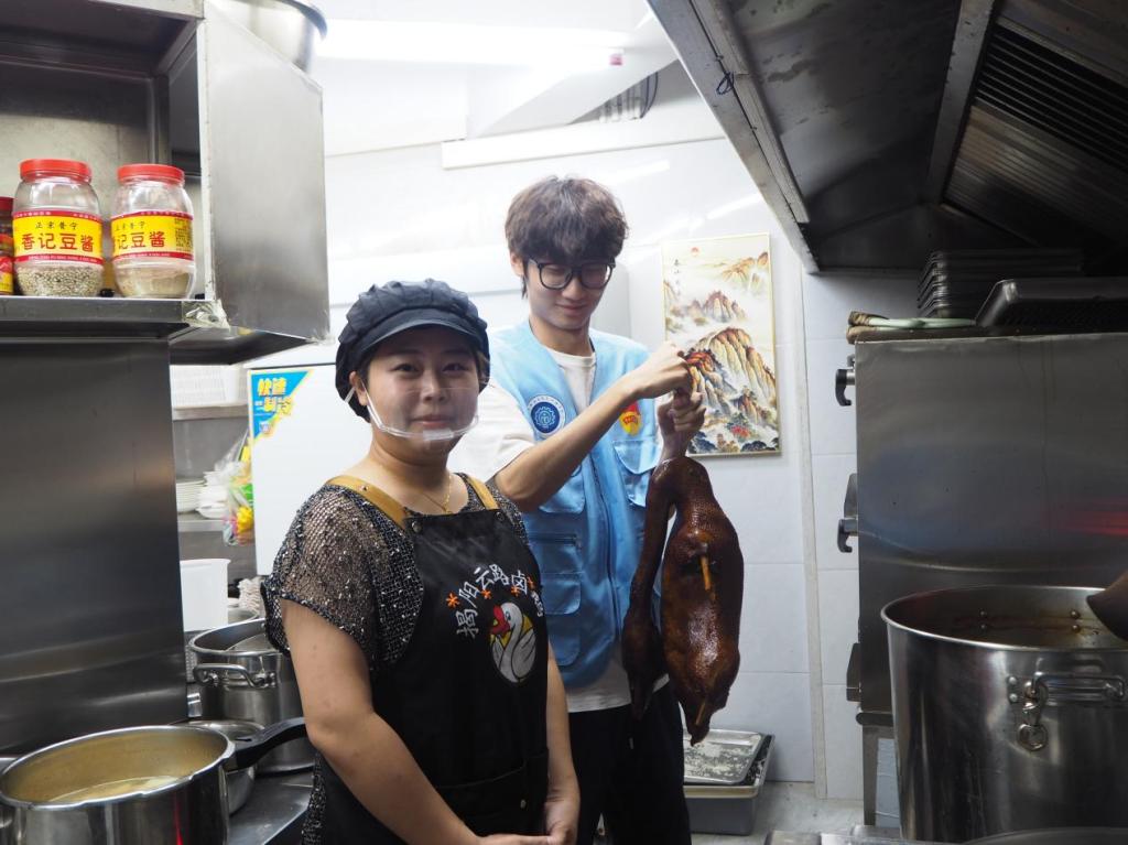 实践队抵达揭东,首要任务是与非遗传承人谢奕亮、谢佳娜精准对接,确认实践路线与时间。核心目标明确:深度体验技艺、提升能力、多维推广、助力产业文化融合。队员们参观卤鹅门店,感受其在当地饮食文化中的地位;聆听历史、文化价值及产业挑战;实地考察鹅养殖场与制作空间,系统学习选鹅、卤制等关键环节,被传承人坚守精神深深打动,奠定调研与文化推广基础。