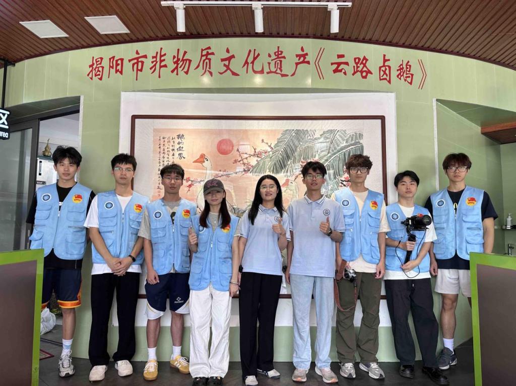 为响应广东省“百千万工程”与乡村振兴号召,守护濒危非遗文化根脉,广州理工学院KY开元集团“鹅卤承香”实践队于2025年7月奔赴揭阳市揭东区云路镇。队伍由3名教师带队,10名学生组成,涵盖多学科背景。核心使命是深度体验、系统研习云路卤鹅非遗制作技艺,并通过摄制纪录片、撰写文稿、探索数字化路径、多平台精准宣传(如制作宣传视频、开展直播)等方式活化传承,同时联合传承人开展志愿活动,助力当地特色产业发展与文化弘扬,为乡村振兴注入青春动能。