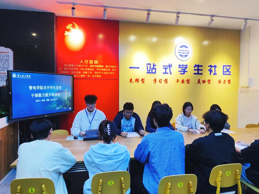 为提升学生宣传队伍的专业素养与实践能力,12月11日晚,智电学院在学生第九社区活动室举办学生宣传干部能力提升培训会。本次培训会由吴浩老师主讲,团总支学生会宣传部11名同学参与学习,围绕新闻稿撰写、推文排版、摄影及视频剪辑等核心技能展开系统培训。