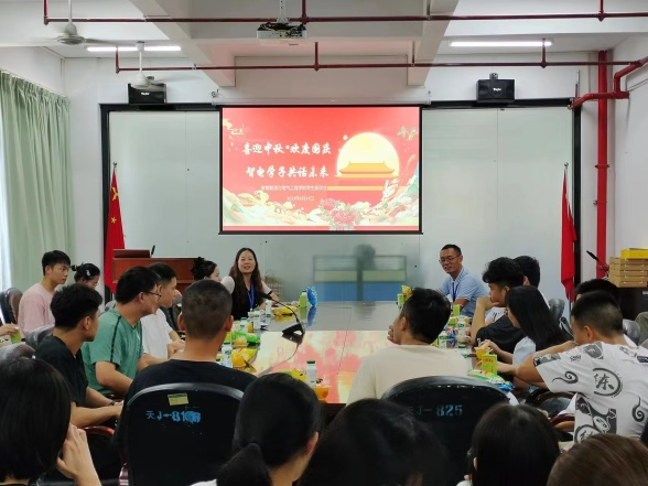 为让同学们感受到节日的喜庆和学院的关怀,进一步了解21级专升本新生的生活状况和学习状态,加强师生之间的沟通和交流,9月27日中午,智电学院召开了“喜迎中秋,欢度国庆,智电学子共话未来”茶话会。本次茶话会在工程楼211会议室召开,智电学院党总支书记吕在艳,全体辅导员老师和21级专升本新生代表参加。