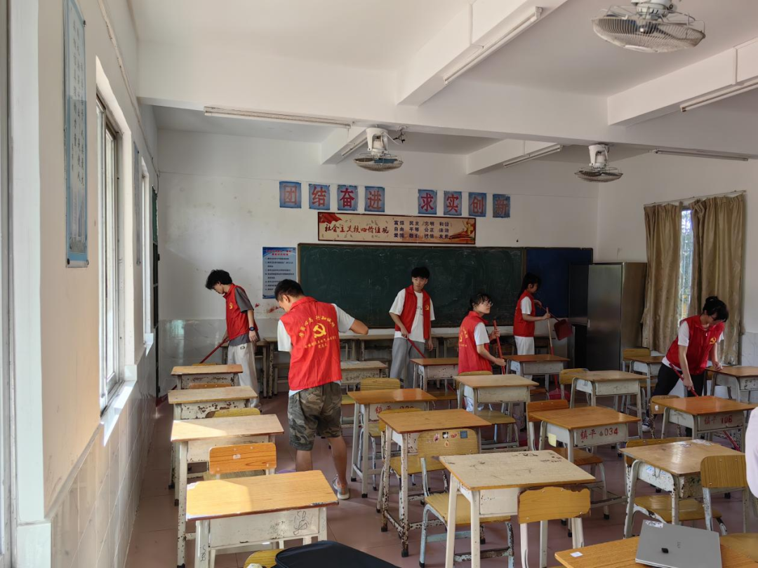 7月8日上午,团队成员与南冲学校梁老师正式见面,简单的寒暄后,梁老师带成员们参观了美丽的校园,并初步介绍了学校的教育教学环境以及同学们的家庭和学习情况。在了解完之后队员们来到教室,默契配合,将教室打扫干净,为接下来的教学活动创设了良好的环境 。