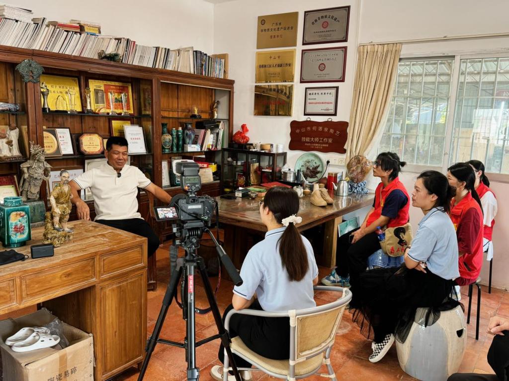 “做今天的文化,未来的古董。”这是何湛泉一直坚守的初心。团队指导老师刘紫云、殷亚月、梁宇铭带领团队成员通过为期两周调研采访了解到,何湛泉从小酷爱陶艺,17岁起师从佛山陶塑名匠劳直学艺,主攻岭南传统陶塑技艺。多年来,他始终秉持古法,坚持用植物和矿物调制釉料,并坚持人工在龙窑用柴火烧制。尽管在外人看来不用机械化生产,坚持手工制作,事必躬行的何湛泉“很愚蠢”,但他却说:“我理解的工匠精神,就是让人能一辈子坚持走下去的精神信仰,是对传统文化的敬畏。”