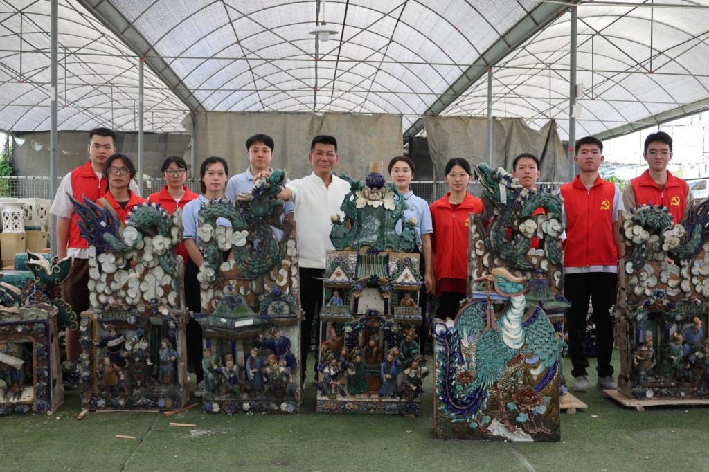 古建筑陶塑瓦脊制作匠心独运,不仅是技艺的展现,更是深邃文化底蕴的承载。它根植于岭南汉族民间,承载着民众对幸福生活的向往与祈福,同时映照出对中华悠久历史与民族文化的深切认同与自豪。当前,我们的团队已精心编撰了一系列原创推文与视频作品,巧妙融合校园融媒体与短视频的传播优势,广泛传播古建筑陶塑瓦脊制作技艺的魅力。团队通过街头走访、实地考察、专家采访等,发现该项非遗技艺正面临着市场需求持续萎缩、社会认知度亟待提升、传承人队伍日渐式微、保护体系尚不完善等多重挑战。实践团队通过调研整理,立足保护与传承视角,基于详实的调研资料,积极提出创新性的解决方案,不断促进古建筑陶塑瓦脊制作技艺的创造性转化与创新性发展,为中华优秀非物质文化遗产的传承与弘扬贡献青春的智慧与力量。