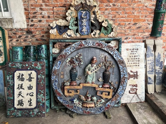 2023年6月,香港鲁班先师庙的修复工作提上日程。香港国际委员会找到广东省古建筑协会,最终决定由中山小榄菊城陶屋的何湛泉师傅负责。鲁班先师庙是香港岛唯一一座供奉木匠祖师鲁班的庙宇,被列为香港一级历史建筑。何师傅于 2023年6月前往香港开会并查看瓦脊后给出专业意见,得到认可。此次修复难度巨大,因该庙瓦脊制作于民国时期,历经百年,部分已破烂,且曾用其他材料修复过。2024年春节后,两条瓦脊被拆下运至菊城陶屋。在修复过程中,虽遵循以旧复旧原则,照搬原有样式,但也与时俱进。何师傅在做旧、泥巴、釉、木材融窑烧制等工艺基础上,思考如何增加时代符号。