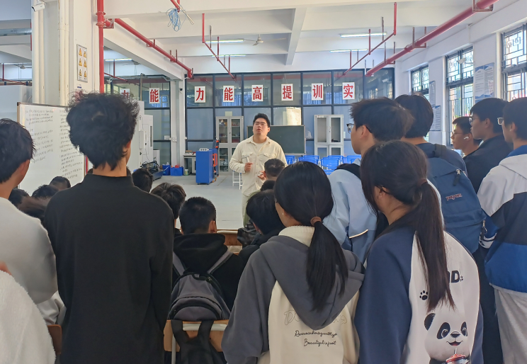 通过参观电工实验室、机械原理和机械设计实训室等,同学们直观地感受到了未来专业课要经常接触的实验和实训环境,帮助他们提前对专业课形成认知。智能制造中心的参观让同学们了解到传统制造技术与现代制造技术的区别,以及现代制造设备的前沿技术和发展趋势,有助于他们形成对专业领域的全面认知,并激发对未来职业发展的思考。在Robocon工作室中,王文涛老师的精彩讲解引来同学们热烈的回应,同学们对专业学习的兴趣被极大地激发了起来。