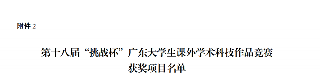 吴晟霖老师指导学生参加挑战杯获得广东省二等奖