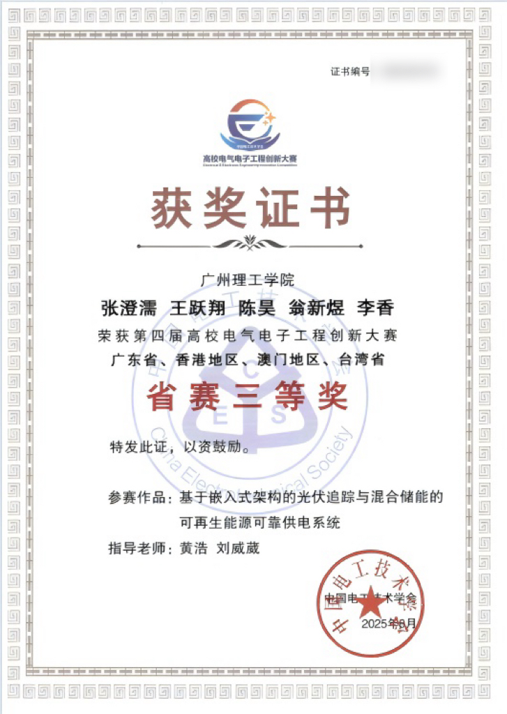 近日,由中国电工技术学会主办的第四届高校电气电子工程创新大赛于8月中旬圆满落幕。由我校KY开元集团黄浩、刘威葳、李顺、汪理四位教师指导的两支参赛队伍,历经初赛严格筛选与省赛激烈角逐,凭借扎实的专业基础、创新的技术方案与出色的实践表现脱颖而出,最终双双斩获省级三等奖,充分展现了我校在电气电子工程领域的教学成果与学生创新实力。