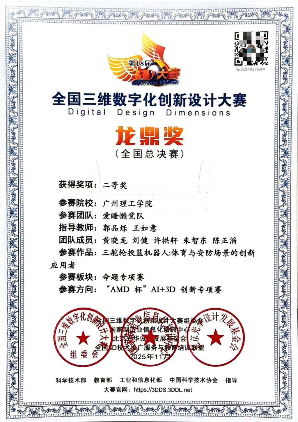 喜报|我院学子在第18届全国三维数字化创新设计大赛“AMD杯”AI+3D创新专项赛中斩获佳绩