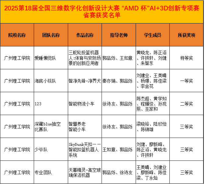 我院学子能在此次竞赛中取得优异成绩,充分展现了我院在人工智能、机械设计、三维数字化等领域的人才培养成果,也体现了同学们敢于挑战、勇于探索的精神风貌。学院将以此为契机,进一步强化数字化、智能化课程模块,积极建设“AI+智能制造”教学体系,以激励更多青年学子在专业竞赛和科技创新中为校争光。