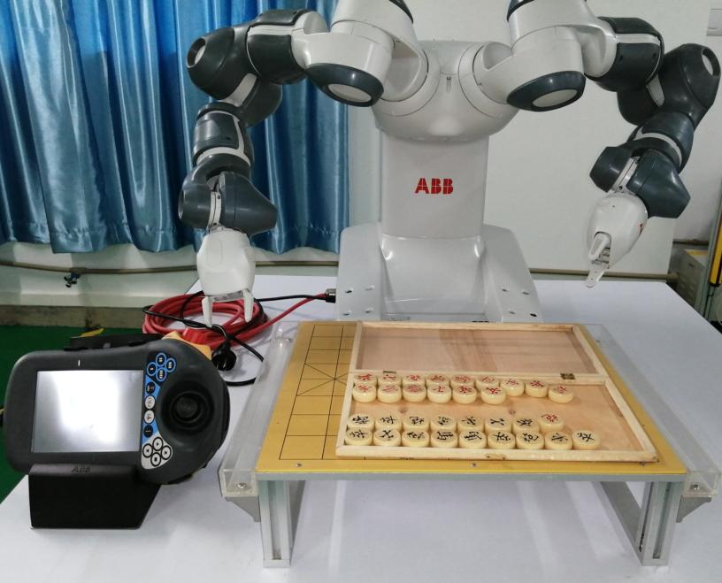 由一台串联SCARA机器人和一台并联DELTA机器人两种不同构型的机器人组成,象棋上料、识别、分拣和摆放。