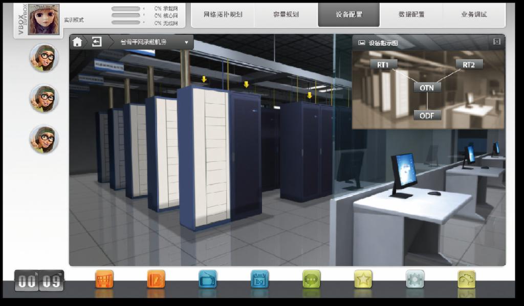 实验机房主要涉及平台有“数据通信、PTN光传输、XPON光接入、现代交换技术4G-LTE基础通信、配套教学的还有4G全网建设仿真软件,PTN仿真软件,3G(TD-SCDMA)仿真软件,网络优化CXA\CXT软件,”采用了中兴通讯目前最先进的设备,而且是与电信运营商现网运行设备完全一致的设备。旨在打造一个与现网完全一致的真实环境,起到教学和科研两方面作用:教学方面采用“理实结合方式”让我们的学生在一个与现网完全一致的设备环境中学习、实践,未来到工作岗位后在技术技能方面实现无缝对接。科研方面也是我们基地进行科研工作的硬件环境。